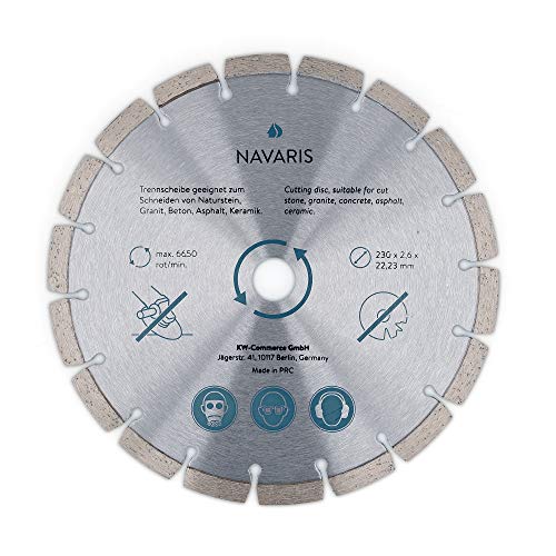 Navarisの9インチダイヤモンドソーブレードは、アングルグラインダー用で、岩、コンクリート、花崗岩、レンガ、石材、舗装材を効率的にカットできます。アーバー径は7/8インチです。