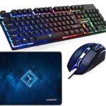 Combrite Raptor ゲーミングキーボードとマウスのセット。大型マウスパッド付、レインボーLEDで魅力的。USB有線の英語UKレイアウトで快適操作。