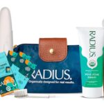 RADIUS Clean & Green デラックスオーラルケアキットは、交換用ヘッド付き歯ブラシ、オーガニックミントアロエニーム歯磨き粉、ビーガンキシリトールミントフロス、トラベルケースを含んでいます。環境に優しいオーラルケアを提供します。