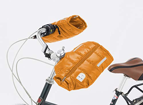 自転車用の防寒ハンドルカバー、ダウンジャケットタイプです。カラーは鮮やかな黄で、保温性が高く寒い季節の乗車を快適にサポートします。取り付け簡単で、手を暖かく保ちつつ安全な運転を実現します。