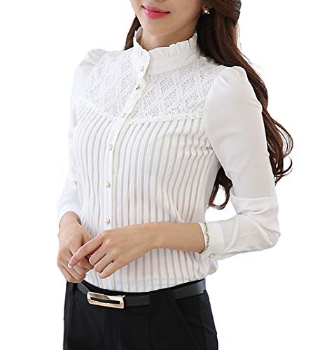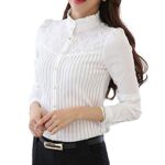 Bolan Verlのレースブラウスは、長袖でストライプデザインのカジュアルビジネスシャツです。オフィスや通勤に最適で、厚手素材で春秋冬にぴったり。立ち襟スタイル、カラーは黒と白、サイズは3XLまで対応。