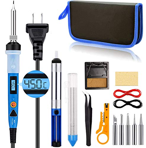 SREMTCHはんだごてセットは、80W、LCD画面、ON/OFFスイッチ付きで200°Cから450°Cの温度調整が可能。5つのはんだ付けチップが含まれた15in1セットです。