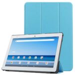 COKOVIのドコモDtab d-41Aケースは、10.1インチタブレット用の三つ折りスタンド付きカバーです。オートスリープ機能と全面保護を提供し、軽量で超薄型のスカイブルー色です。