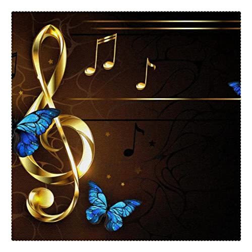 布製ランチョンマットの4枚セット。洗濯可能で、食卓を彩る音符や蝶のデザイン。現代美術にインスパイアされたスタイリッシュなアイテムです。