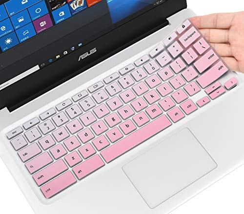 CaseBuyのキーボードカバーは、ASUS Chromebook Flip C433、C434、およびC302CA/C423NA/C425TAなどに対応。14インチのデバイス用で、オンブレピンクのデザインです。