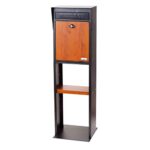 セトクラフトのスタンドポストは、北欧モダンデザインの置き型郵便受けです。スタイリッシュなブラック仕上げで、木目調もあり、エクステリアとしておしゃれな印象を与えます。自立式で、玄関や店舗に最適です。