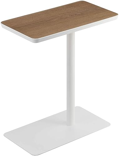 山崎実業の差し込みサイドテーブル(タワー)は、ホワイトのW45XD25XH52cmサイズで、ソファやベッド横で手軽に使用できるちょい置きテーブルです。