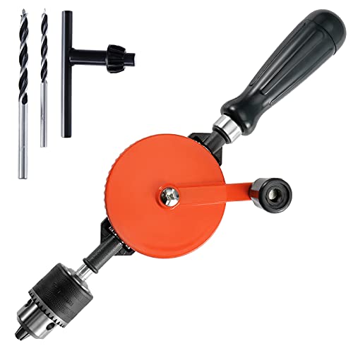 OCRハンドドリルは手動クランクリルで、3/8インチ(1.5mm-10mm)の精密チャックを搭載。木製、プラスチック、アクリル、回路基板のパンチングに最適で、ドリルビット2個付き。