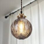 Cerdecoの樹木の葉柄ガラス製ペンダントライト。スモークグレーでレトロな雰囲気。サイズはシェード150x180mm、E17引掛けシーリング式。カフェ風インテリアに最適。