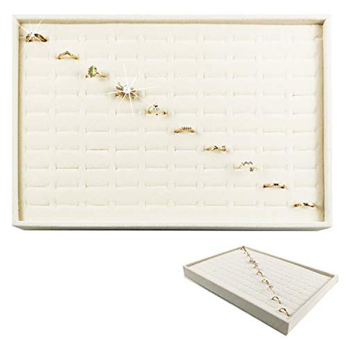 ティアニーズリング収納トレイは、PUレザー製で美しい白色。リングを最大100個収納可能で、アクセサリーの整理やディスプレイに最適です。