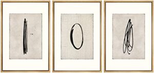 SIGNFORD フレーム入りキャンバスプリント ウォールアートセット ミッドセンチュリー モダン ペイント ストローク 抽象的 図形 イラスト モダンアート 装飾 ミニマル マルチカラー リビングルーム、ベッドルーム、オフィス用 – 16インチx24インチx3インチ ナチュラル