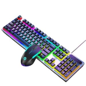 ゲーミングキーボード&マウスセット。高耐久、RGBライト、多種モード。USB有線、防水機能、マルチメディアキー付き。2400DPI調整、6ボタンマウス、マウスパッド付。PS4、Nintendo Switch対応可。
