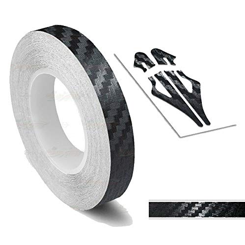 デカールテープはカーボンファイバー調のビニールステッカーで、3/8インチ幅・長さ32フィート。車のボディやバンパー、ヘルメットに最適なピンストライプデザイン。