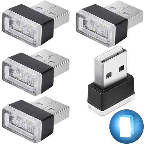 5ピースアイスブルーUSB雰囲気ライト、5VミニUSBライト。車やラップトップに最適なアンビエント照明キット。夜の装飾にぴったり!