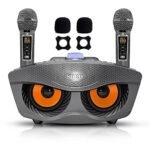 第二世代アップグレード版カラオケマイクスピーカーマイクセット。サウンドカードに男、女、子供の声モードあり。ハイパワーマイクと手持ちマイク2本付き。スピーカー&マイクは別々に使用可。