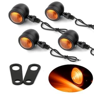 PIENSE バイク バイク用 ウィンカー 4個セット 1台分 汎用 ブラック 砲弾型 ブレット型 レトロ アメリカン オレンジ (ブラック4個/Rステー2個)