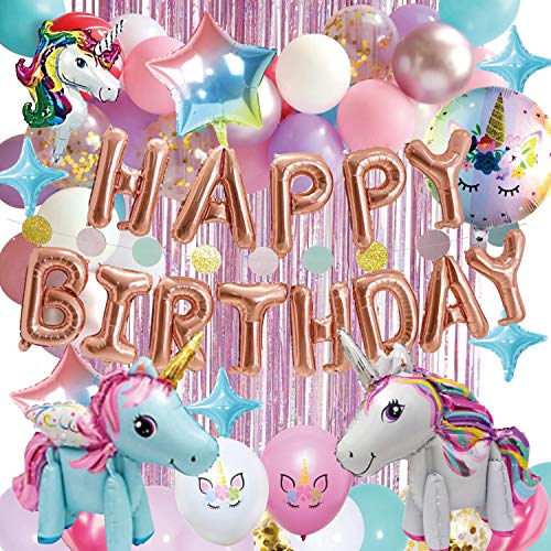 deerzonの誕生日飾り付けユニコーンバルーンセットは、女の子向けの美しい風船装飾で、素敵なバースデーパーティーを演出します。星やスターのデザインが魅力的です。