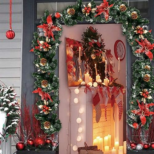 このクリスマスガーランドは2.7mの長さで、レッドの色合いが特徴です。クリスマスツリーやリース、パーティー装飾に最適で、モールやキャンディーオーナメントで華やかに演出できます。