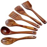 木製キッチン用品セット コーティングなし 食器洗い機対応 竹製 穴付き オーガニックチーク材 木製スプーン 調理用 ダークブラウンの高価買取