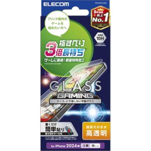 エレコム iPhone 16 Pro ガラスフィルム 強化ガラス 硬度10H 指すべり長持ち さらさら ゲーム操作に最適 指紋がつかない 気泡が入らない 【ガイド枠付き】 PM-A24CFLGGE