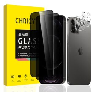 CHRICY【2+2枚セット】ガラスフィルム+カメラフィルム iPhone 12 Pro用の 覗き見防止フィルム 保護フィルム 硬度9H 耐衝撃 高透過率 全面保護 自動吸着 気泡ゼロ 指紋防止 撥水撥油 飛散防止のぞき見防止