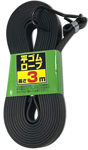 トップ 自転車 荷物固定用 ヒラゴムロープ 3m は、頑丈なゴム製で荷物をしっかり固定。自転車の荷台に最適で、長さ3mの柔軟性があり、様々なサイズの荷物に対応。アウトドアや日常使いに便利です。