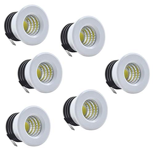 LED小型埋め込み式天井ダウンライト1.5インチ3W。ウォームホワイトの光で、トランス付属。キャビネットやスポットライトに最適な6パック。