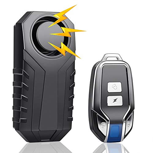 3段音量調節可能なバイク防犯アラームは、IP55防水、113dBの大音量、7段階振動感度。自転車や車のセキュリティに最適。リモートコントロールで簡単操作、日本語説明書付き。