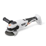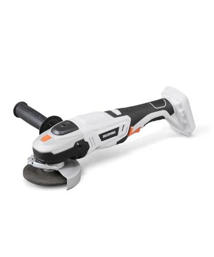 アイリスオーヤマの18Vコードレスディスクグラインダー。軽量1.6kg、100mm刃対応。補助ハンドルは上部・左右取り付け可能。DIYや金属・木材の研磨・切断に最適。