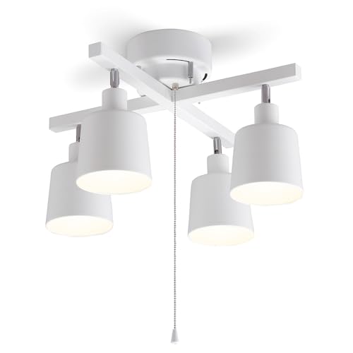 アイリスオーヤマのシーリングライトは4灯のスポットライトで、クロスタイプの3段階調光が可能です。レトロ調のデザインでLED対応、簡単に取り付けられ、インテリアや間接照明としておしゃれな北欧ホワイトのCE4LA-20C-Wです。