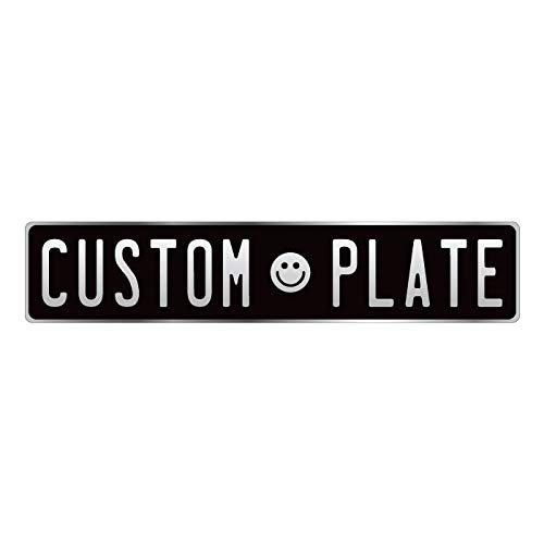 オリジナルエンボスアルミサイン、ユーロプレートで大文字13文字まで対応。黒プレートにシルバー文字が映えるディスプレイ用。高品質で耐久性があり、個性的な表札を作成できます。
