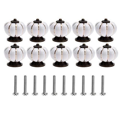 可愛いカボチャデザインのセラミック製ノブ。40mmサイズで、引き出しやキャビネットに最適。10個セットでDIYにぴったりのアンティークスタイル。収納家具をおしゃれに演出!