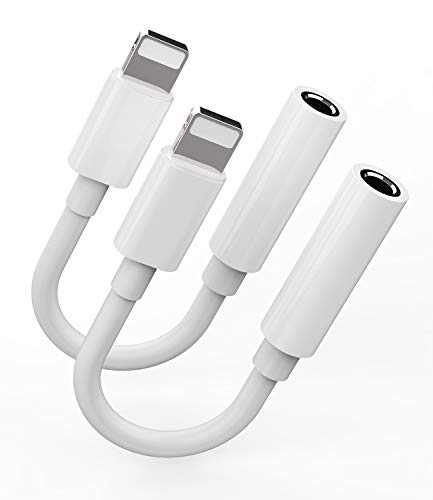 iPhone 12/11/XS/X/8/7およびiPad向けの3.5mmジャックイヤホンアダプター2個パック。すべてのiOSデバイスに対応し、カーミュージックやヘッドセットにも最適。