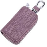 MIKEART スマートキーケースは、本革クロコ柄の高級感あるデザイン。全車種対応で、大容量収納が特徴。男女兼用で、プレゼントにも最適なパープルカラーです。