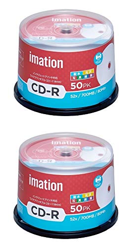 イメーション 1回記録用 CD-R IM005は52倍速対応で、耐水・光沢の写真画質を実現したウォーターシールド仕様です。50枚入りが2個セットで、データ保存に最適です。