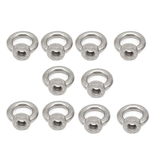 ステンレス製アイボルトとアイナットの10個セット。M5サイズで、耐食性に優れマリンハードウェアに最適。固定や吊り下げ用途に対応しています。