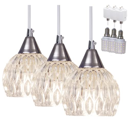 福山照明の北欧スタイルのレール照明。おしゃれなぺンダントライト3個セットで、3段階調色LED電球付き。クリアガラスを使用し、和風のインテリアに最適。ダイニングなどの天井照明にぴったり。