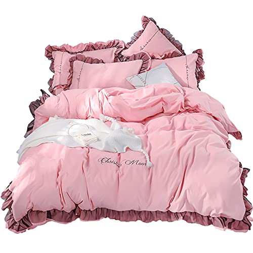 蓮の葉の刺繍が美しい布団カバーセット。掛け布団カバー、ボックスシーツ、枕カバーの3点セットで、シングルサイズ対応。速乾タイプで清潔感もあり、洗い替えにも便利なピンク色のデザイン。