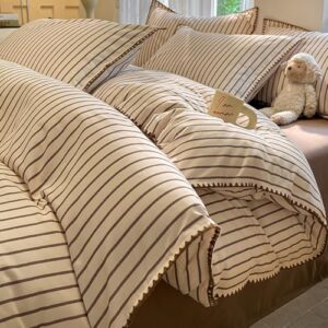 布団カバーセット シアサッカー生地 シングル ダブル 寝具カバーセット 3点セット 掛け布団カバー ボックスシーツ 枕カバー 可愛い 柔らかい 快適 通気性 速乾タイプ 丸洗い オールシーズ(ダブル4点セット、ライトコーヒー)