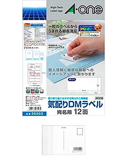 エーワンの気配りDMラベルは12面で、プリンタ兼用の18枚入り(26503)×3セット。画材屋ドットコムのポストカードAも取り扱い。アイデア次第で多用途に使えます。