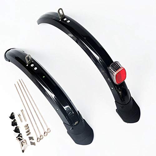 16インチ折りたたみ自転車用の泥よけフェンダー2PCSセット。前面と背面に取り付け可能で、MTBにも対応。リアライト付きで安全性向上。カラーはVブレーキブラック。