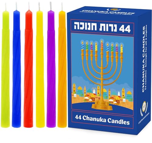 マルチカラーエルサレムボックスには、ハヌカーキャンドルが44本入っています。すべてのハヌカの8泊に対応するメノラーキャンドルで、華やかで楽しい祝祭を演出します。