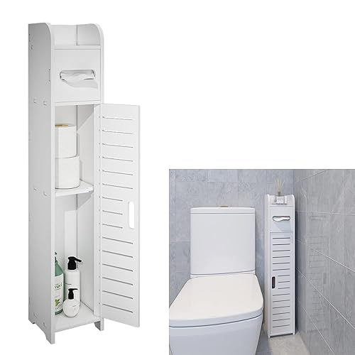 FRSTONEのトイレ収納は、幅15cm・奥行15cm・高さ80cmのスリムデザインで、ペーパーやティッシュ、玄関収納に最適です。おしゃれなホワイト色で、組み立て式かつ工具不要です。