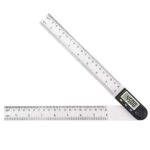 eSynicデジタル角度計は、200mmのLCD液晶画面を搭載し、自由に角度と長さを測定可能。耐久性が高く、電池付属で便利。ブルーのデザインが特徴。