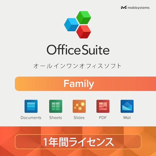 OfficeSuite Familyは、Microsoft Office Word・Excel・PowerPoint・Adobe PDFとの互換性を持ち、Windows 11/10に対応したフルライセンス製品です。6ユーザー利用可能。