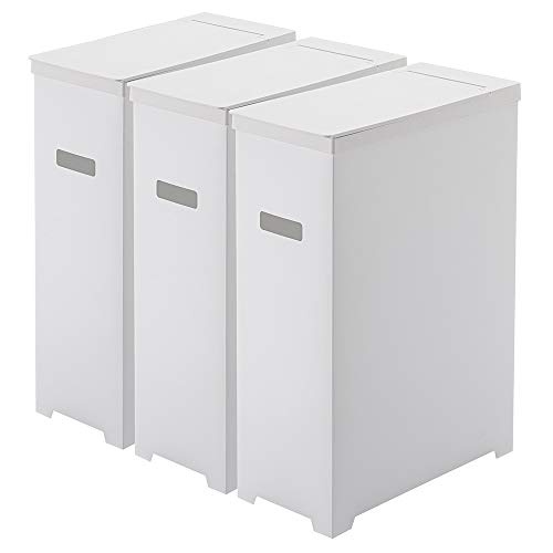 山崎実業のスリム蓋付きゴミ箱3個組(ホワイト)は、約W19×D40×H54cmのサイズで、タワー型デザイン。折り畳んで運べる工夫があり、整理整頓に最適です。