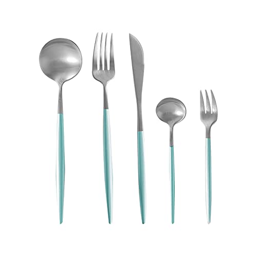 andooのゴールドカトラリーセットは、スプーン、ナイフ、フォーク、ティースプーン、ケーキフォークの5点が揃ったおしゃれな食器です。18-10ステンレス製で、食洗機対応。20色から選べるデザインで、キャンプや家庭用にも最適。