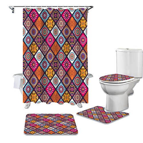 マンダラプリントシャワーカーテン4点セットは、カラフルで魅力的なデザインが特徴です。防水性と耐久性に優れ、バスルームをおしゃれに演出します。取り付け簡単、洗濯可能でお手入れも楽々です。