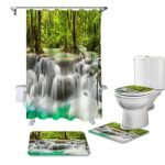 滝緑の森シャワーカーテンセットは、自然の美しさを感じさせるデザインで、耐水性のある素材を使用しています。サイズは標準的なバスルームに適しており、洗濯機での洗濯も可能です。