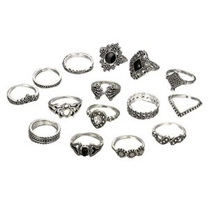 Dリングシャックル 上記のセットヴィンテージリングナックルブルー女性ボヘミアンシルバーリング15個/セットスタックリング 女性用スタッドピアスパック